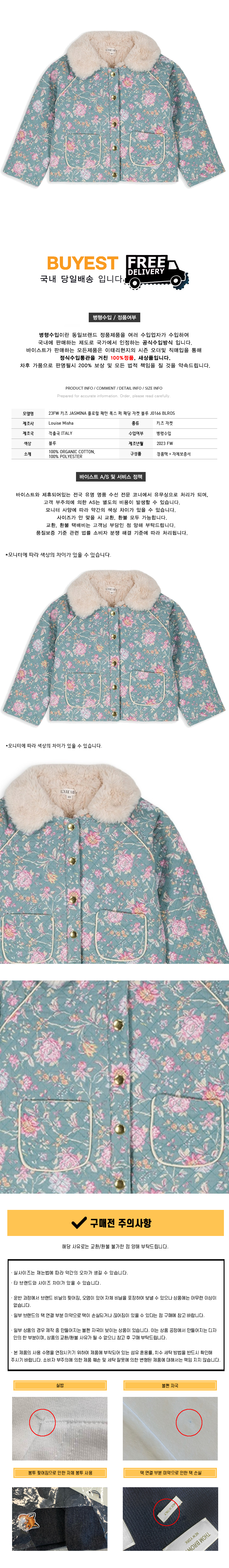 * 모 델 명 : 23FW 키즈 JASMINA 플로럴 패턴 폭스 퍼 패딩 자켓 블루 J0166 BLROS